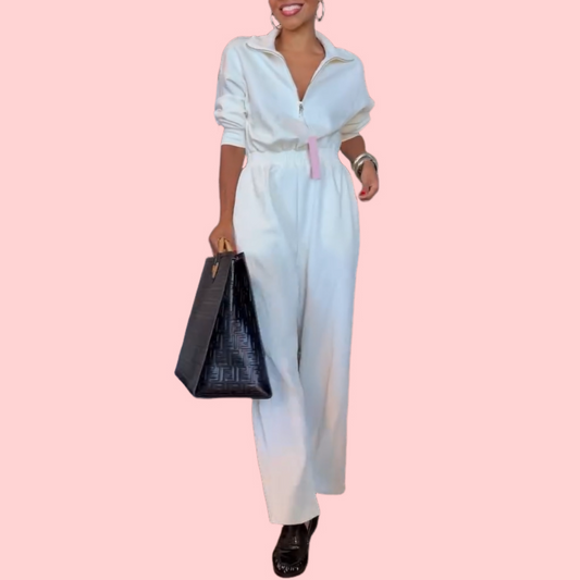 Blue Denim Pocket Jacket & Wide-Leg Trousers Set