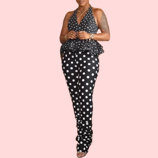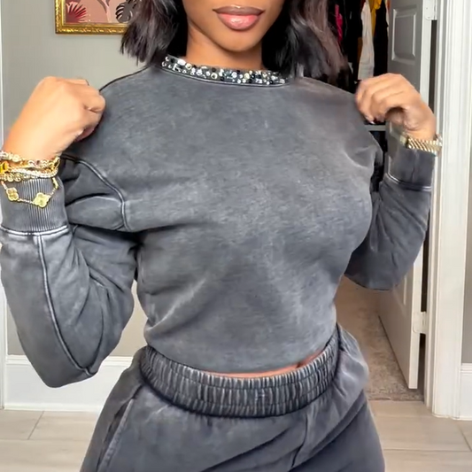 Blue Denim Pocket Jacket & Wide-Leg Trousers Set